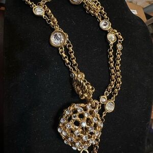 Blanca 36" Gold Tone Necklace with Crystal Ball Pendant Adjustable