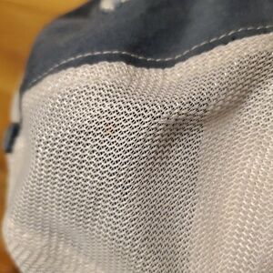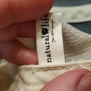 Trucker baseball hat by Natural Life. Embroidered 'Live Happy' design. Vibrant multicolor pattern. Steel blue with cream mesh. Distressing on brim edge and front section. Snapback for adjustable fit. One very faint spot on mesh (see last pic) otherwise excellent condition.