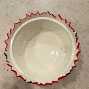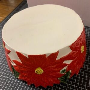 Vintage ceramic Christmas poinsettia bowl 8 x 3.25 with lid