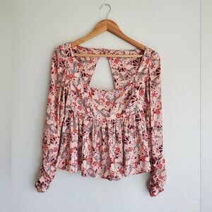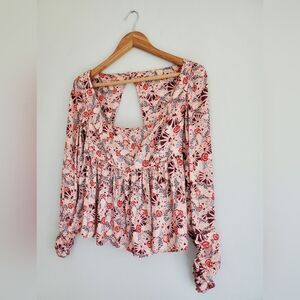 Free People Floral Long Sleeve Polyester Women's Top Key Hole Back Size XS