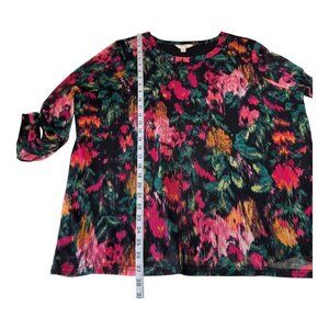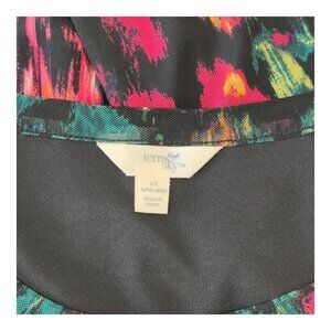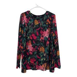 Terra & Sky Women Plus Size 1X Long Sleeve Floral Top Blouse Stretch Mesh Lined