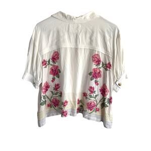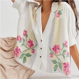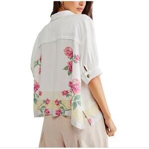 We The Free XS Oversized Big Blooms Button Up Flowy Shirt Stripe Rose