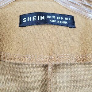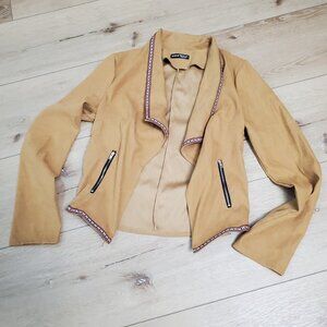 Faux Suede Camel Cardigan Wrap Jacket Western Boho Open Front Embroider Trim XS