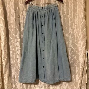 VTG 80s Blue Denim Button Front Maxi Jean Skirt Vintage Abiatti Collection