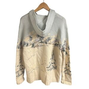 Ralph Lauren Womens L 100% Lambswool Fair Isle Snow Scene Horses 1/4 Zip Sweater