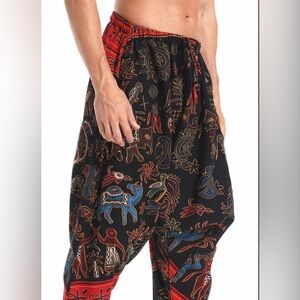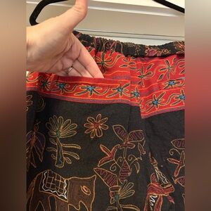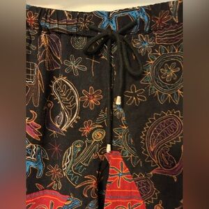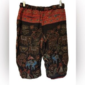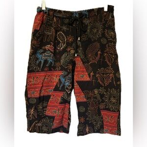 Long shorts. Black with embroidered style print. Men’s large. Four pockets. Drawstring and elastic waist. Cotton Great condition. See pictures for details.