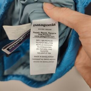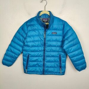 Patagonia Down Sweater Boys Small 7-8Y Light Blue Full Zip Jacket Winter Snow