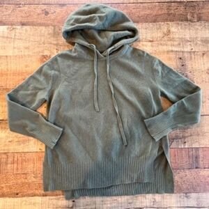 Banana Republic New Way Hi Low Green Knit Hoodie Sweater Small Merino Wool