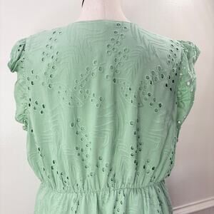 Torrid Plus Size 2X Babydoll Tank Top Blouse Eyelet Ruffle Sleeve Hemlock Green