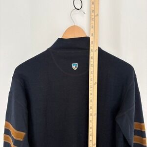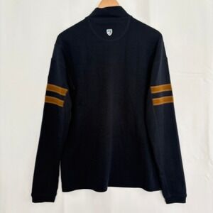 KUHL Mens Merino Wool 1/4 Zip Pullover Sweater Size M Navy Brown Stripe