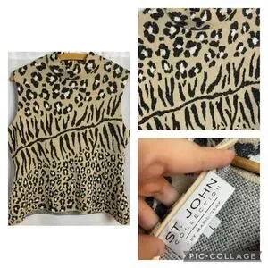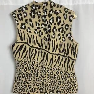 St. John Collection By Mary Gray Animal Print Turtleneck Top Size L