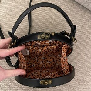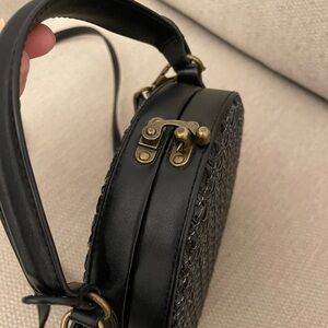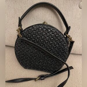 Beautiful classic black woven Anthro bag in mint condition. Gorgeous quality material with removable long strap to carry the bag as a hand bag. 7 in x 7 in.