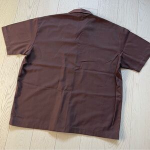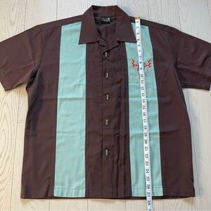 Vintage late 90s y2k retro tiki embroidery bowling shirt in chocolate brown and robin egg blue