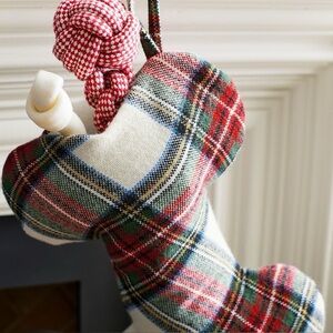 New, Pottery Barn Stewart Tartan Plaid Bone Stocking🎄