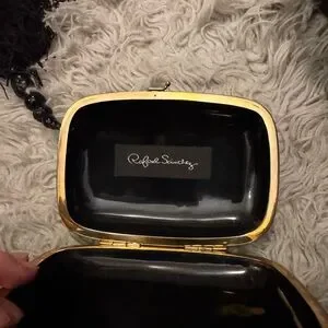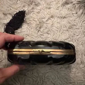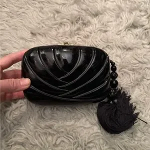 This elegant black clutch bag is perfect for any occasion. Its sleek design and classic color make it a versatile accessory for your wardrobe. This came from a collectors closet , it’s in very good condition.