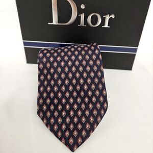Christian Dior Silk Neckyie in Navy and Red Interlocking Diamond Pattern