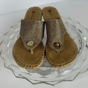 White Mountain Gold Sparkle Espadrille Platform Sandals Size 6M Thong