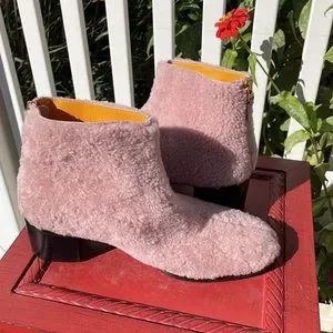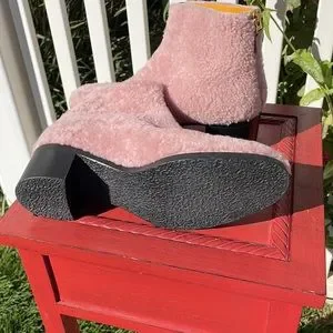 LERRE Pink Sheepskin, Leather Lined NWOT, ZIP Back, Size 8 Booties