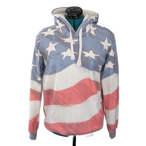 Embrace a bold look with this stylish stars & stripes fleece lined American flag hoodie! Perfect for casual outings or festive occasions, it features a kangaroo front pocket, thick drawstrings to adjust the hood, & grey cuffing around the wrists & bottom opening for a fitted feel. Stay comfortable & patriotic all year round!