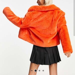 COLLUSION faux fur boxy jacket in bright orange. Worn once, no signs of wear