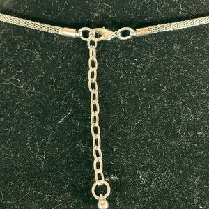 This elegant silver necklace features intricate detailing, perfect for adding a touch of sophistication to any outfit. Its timeless design makes it a versatile accessory for any occasion.