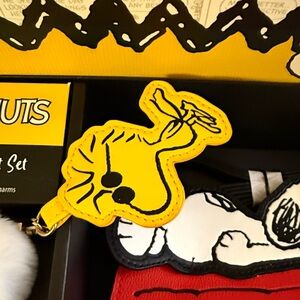 Charming Peanuts gift set featuring Snoopy. Includes a red pouch crossbody and 2 keychain or bag charms. NIB