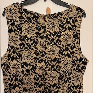 Candalite Black and Tan Sleeveless Sheath Dress, Sequins Details