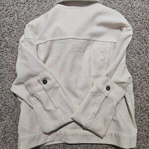 Super cute and soft Trucker style jacket from The Normal Brand! This is definitely a cream color, not as white as the picture but i included a few from the websites listing. Excellent used condition, no stains or snags, I wore this maybe one time but decided it was too big for me so I want to pass it along as its sold out now! Smoke free home!