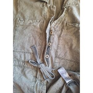 The Free People Rhodes Utility Chino One Piece Coverall is a versatile and stylish jumpsuit perfect for various occasions such as travel, parties, casual outings, and workwear. This one-piece coverall features a collared neckline, button & drawstring closure, and a relaxed fit with an adjustable waist for comfort. Made from denim fabric with a blend of other materials, it is easy to care for and suitable for machine wash. The green color, casual cuffed short sleeves, and straight leg style give it a trendy and bohemian vibe, making it a must-have for the summer, fall, and spring seasons.