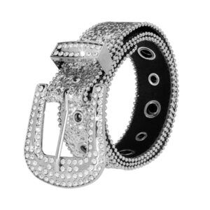 Brand New Rhinestone Cowgirl Belt Apparel Belt; Size - Suit for waist size 29-39"; Color - Silver-a(1.5“width); Material - Leather