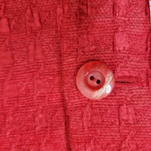 Adorable vintage 1980s Carlisle red textured suit coat jacket. Button front with shoulder pads, long sleeve, size 4. Retro preppy collegiate