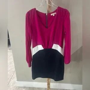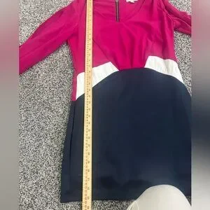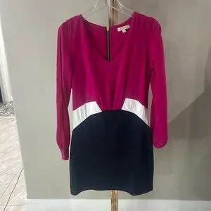 Gianni Bini Pink White Navy Colorblock V-Neck Long Sleeve Dress Size 9
