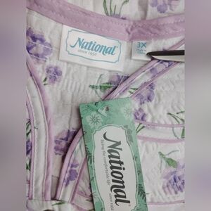 National Women's Lightweight Housecoat Mumu Pockets White Purple Floral Size 3X