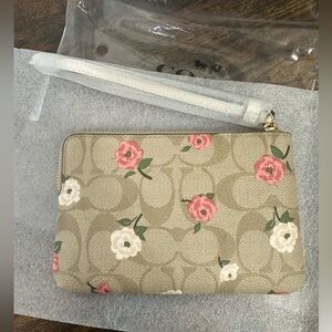 Corner Zip Wristlet In Signature Canvas With Floral Print. Brand new tags.