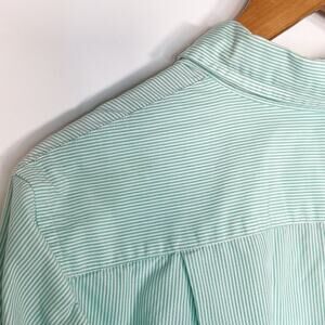 J. Crew Oversized Secret Wash Banker Stripe Button Down Shirt Green