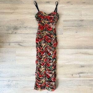 L’Agence red rose / leopard Caprice convertible stretch midi dress - 2 (XS) NWT