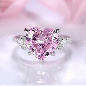 Pink Heart Diamond Cubic Zirconia Embellished With White Engagement Ring 🆕 Gift