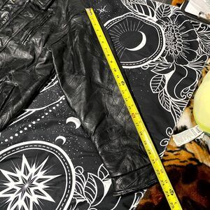 Elevate your cool-weather wardrobe with the exceptionally crafted Giovanni Navarre Italian Stone Leather Jacket. Sized Men's Large (L), this jacket is a testament to quality leatherwork, blending rugged Workwear durability with sophisticated European styling. The exterior is constructed from soft, genuine Black Leather, distinguished by its unique Stone texturea patchwork or panel design featuring varying grains and slight pleating across the chest and shoulders. This detailing gives the jacket remarkable depth and a bespoke, artisanal appearance. The classic, slightly roomy silhouette includes a substantial Pointed Collar and a secure Full-Zip Closure with a snap overlay, ensuring superior protection against the elements. Designed for Outdoor comfort, the jacket is fully Lined, providing essential warmth and a comfortable drape over knitwear or shirts. Functionality is paramount, with multiple exterior pockets, including zippered chest pockets and large front patch pockets, offering ample and secure storage space.