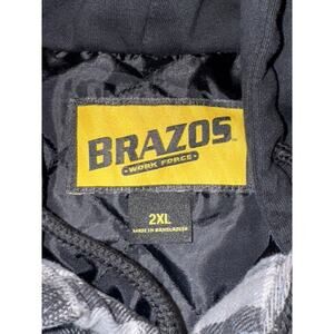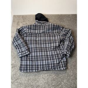 Brazos Work Force Flannel Hooded Quilted Jacket Mens Large Plaid Snaps Pockets