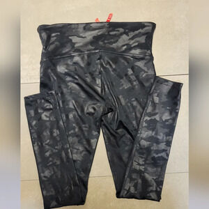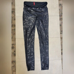 Spanx Fuax Leather Camo Leggings Medium Black