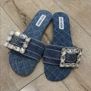 Stylish denim sandals with a sparkling buckle. Perfect for casual outings. Brand new. Only been worn to try on.