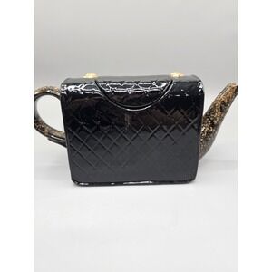 Vintage Jim Bailey Black Quilted Black Gold Luxury Purse Teapot Limited Edition