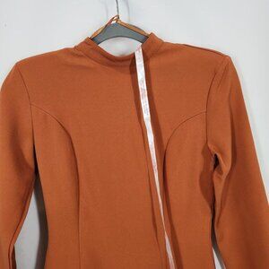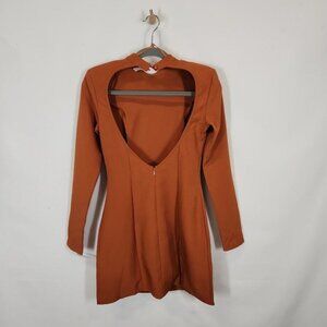 Missguided High Neck Cut Out Back Dress Long Sleeve Crepe in Rust - Size US 0