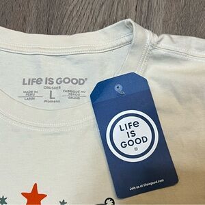 Life is Good Women’s Large Crusher Tee Long Sleeve Beige Christmas Joy Squirrels