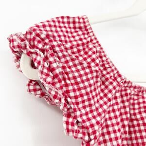 John Galt Brandy Melville Womens Farmer Summer Chic Vacation Gingham Crop Top in Red and White. One Size.