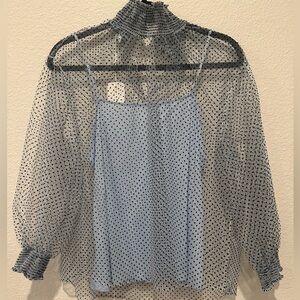 Akris Punto Pin-Dot Tulle Turtleneck Blouse - Size 10