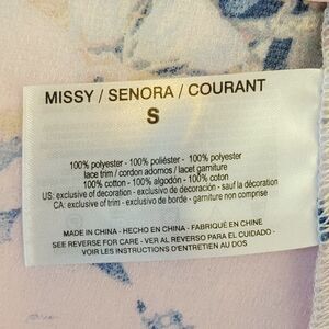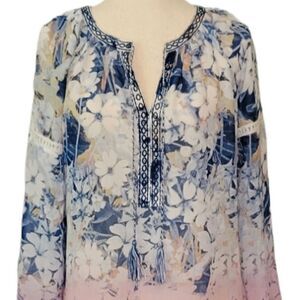 Vintage America Rochelle Blue & Pink Floral Tassil Long Sleeve Chiffon Blouse