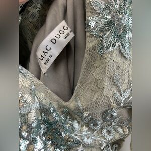 Mac Duggal 67842 NWOT BELL SLEEVE FLORAL EMBELLISHED GOWN in vintage seafoam