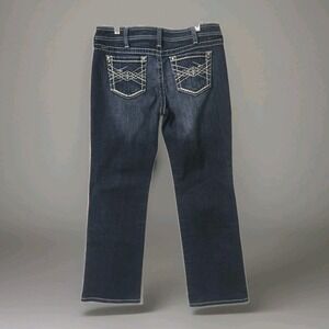 The Ariat Amber Wester Jeans in size 30 offer a stylish and versatile option for women. These straight, distressed pants feature rhinestone accents, a mid-rise fit, a 5-pocket design, and a 27.5-inch inseam.