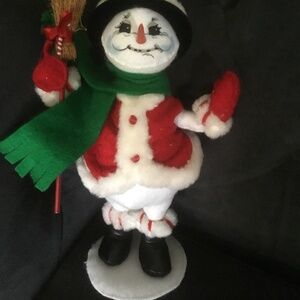 2008 Annalee Snowman Doll with Hat Scarf and Broom 10”